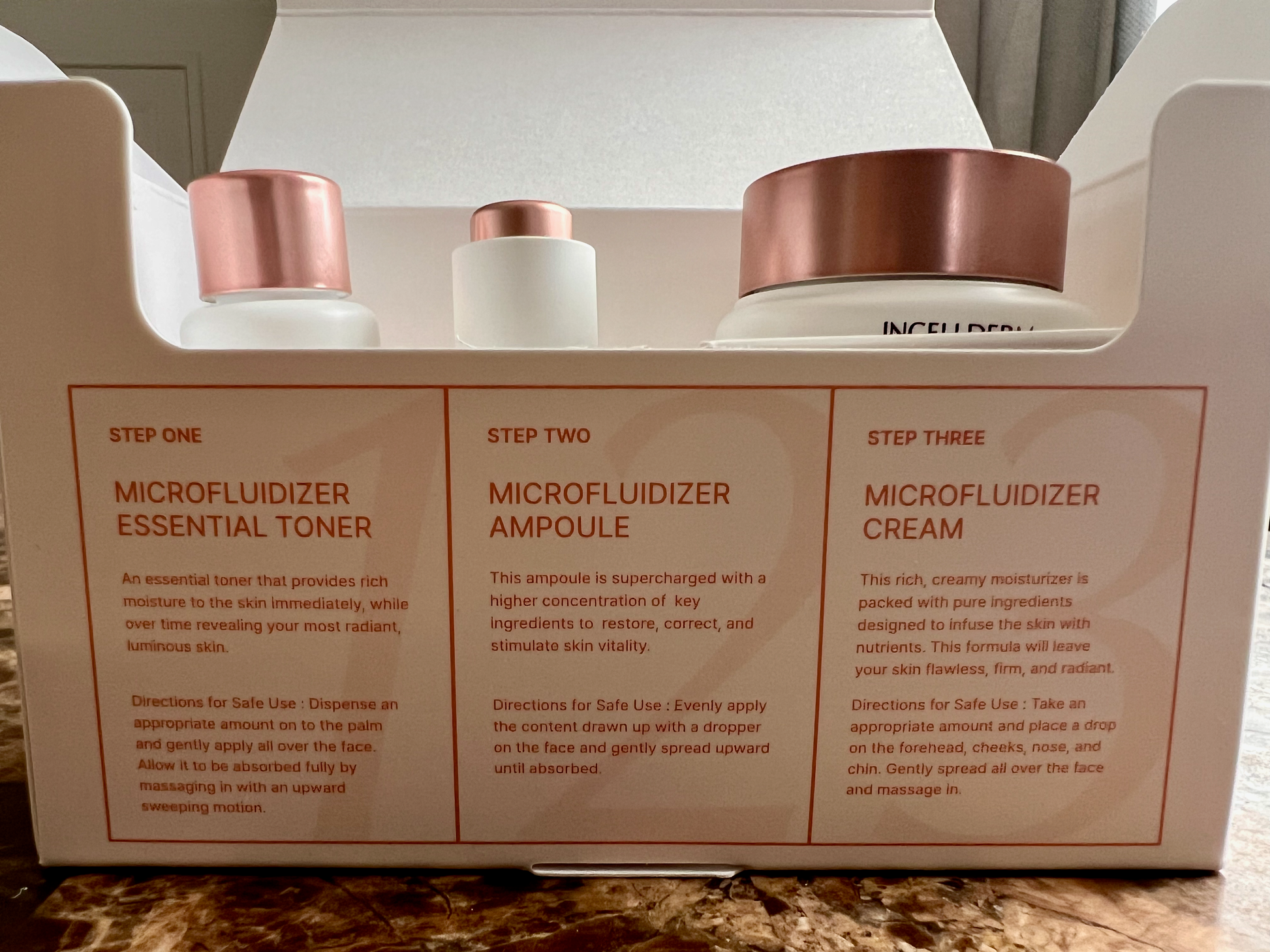 A Riman Discovery Kit (often called an "Experience Kit") is a curated set of travel-sized skincare products from the Korean brand Riman (Incellderm) designed for customers to try their popular routines, featuring bestsellers like the Microfluidizer Essential Toner (20 mL/0.67 fl. oz.), Microfuidizer Ampoule (6 mL/0.20 fl. oz.), and Microfluiizer Cream (15 mL/0.50 fl.oz.), offering a complete ritual for cleansing, hydrating, and rejuvenating skin, perfect for travel or sampling.